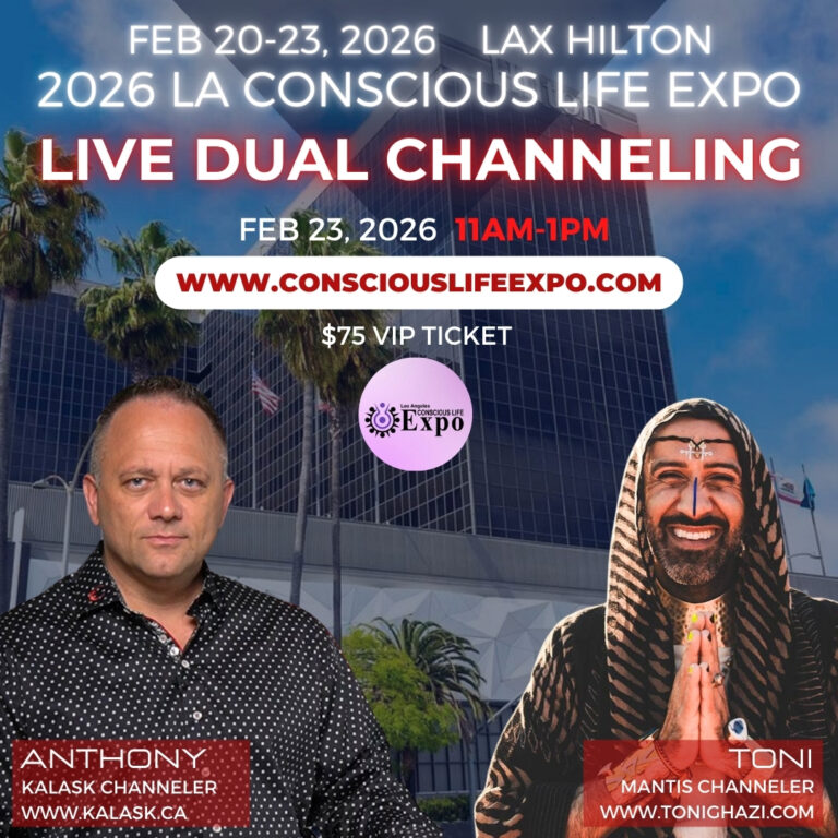 Anthony’s live channeling is scheduled for Monday Feb 23, 2026, 11am-1pm in Century Room. This event is dual channeling with Toni Ghazi.